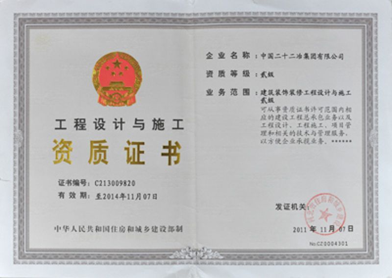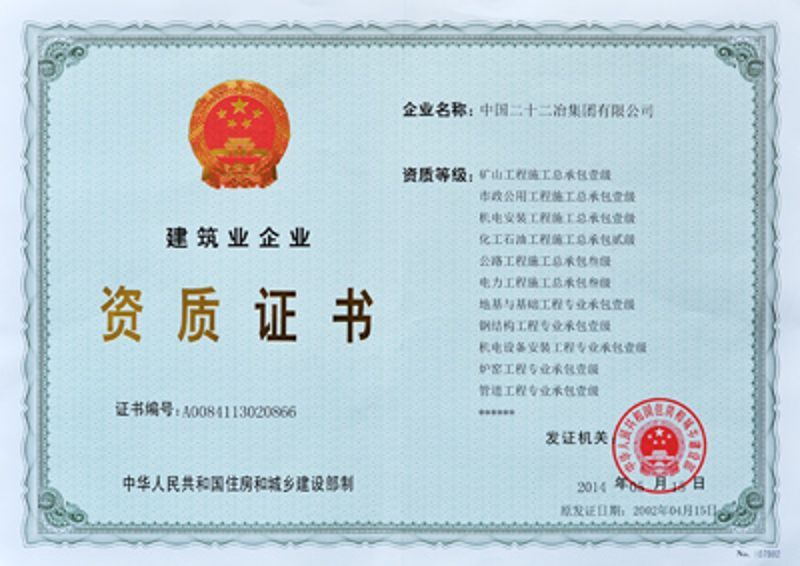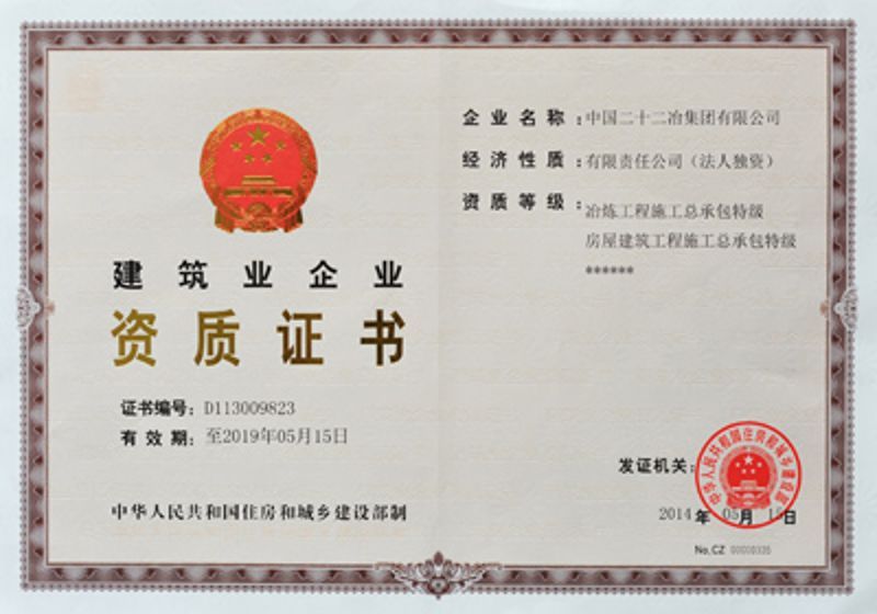 中國二十二冶集團(tuán)施工資質(zhì)